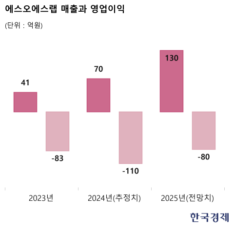 다만 실적은 부진하다. 2021년 매출 12억원, 영업손실 70억원에서 2023년 매출 41억원 영업손실 83억원을 기록했다. 지난해 3분기 누적 매출 36억원, 영업손실 91억원이라 흑자는 요원하다. 아직 숫자로 보여줄 만한 실적이 없고 최근 주가가 급등했기에 세력의 차익 매물이 나오면 신규 투자자가 피해를 볼 수 있기에 주의가 필요해 보인다.