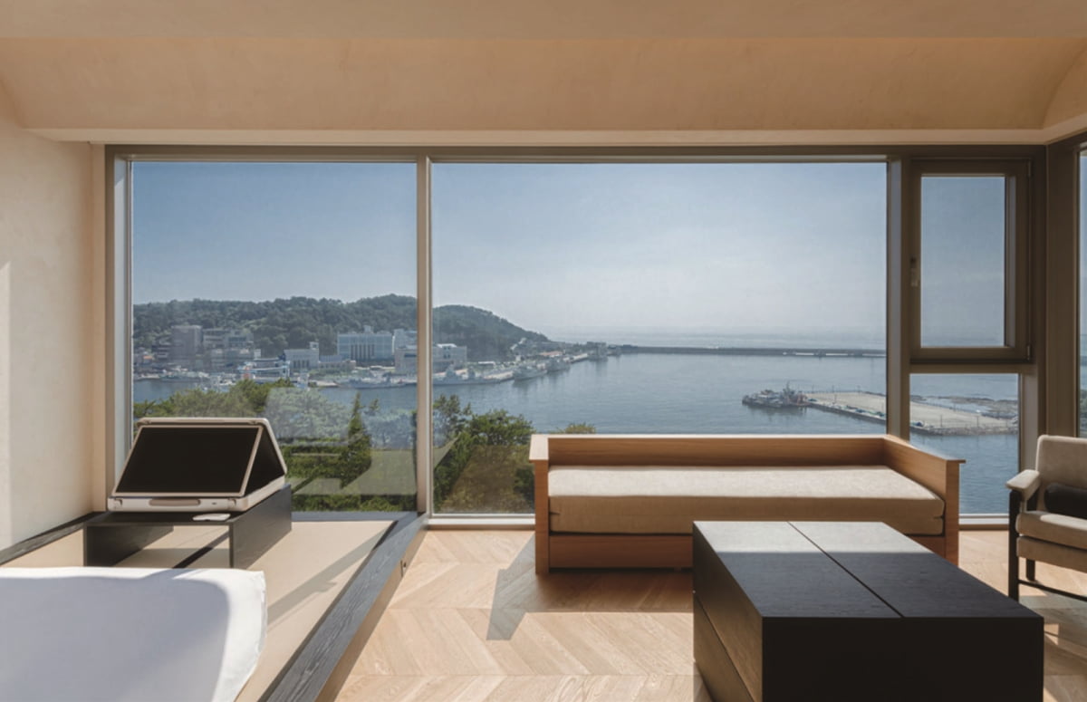 일본의 료칸을 한국식으로 재해석한 공간. 체크인할 때 컬러 테스트를 통해 스트레스 정도를 진단하고, 아로마 오일을 증정한다. 객실 테라스에 히노키탕이 있어 한겨울에도 야외 온천을 즐길 수 있다. 객실 창밖으로는 아담한 항구의 정겨운 풍경이 펼쳐진다.