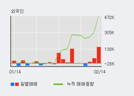 지난 한달을 기준으로 보면 외국인이 47.2만주를 순매수했고, 기관도 8.0만주를 순매수했다. 반면 개인들은 50.3만주를 순매도한 것으로 나타났다. 같은 기간 이 종목의 거래비중은 외국인과 개인이 각각 15.8%, 80.9%로 비중이 높다.