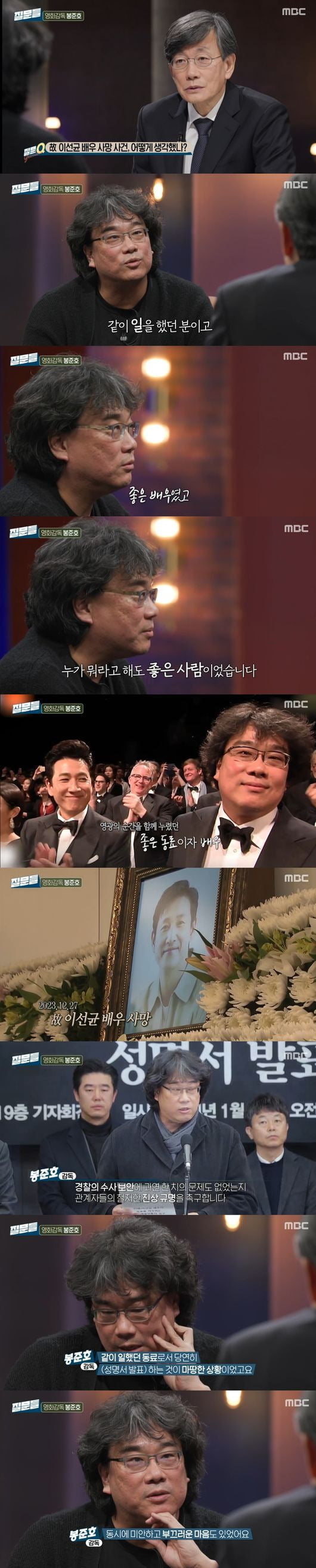 봉준호 감독이 고(故) 이선균을 언급하며 미안하다는 심경을 전했다.19일 방송계에 따르면 전날 방송된 MBC '손석희의 질문들'에는 영화감독 봉준호가 출연했다.