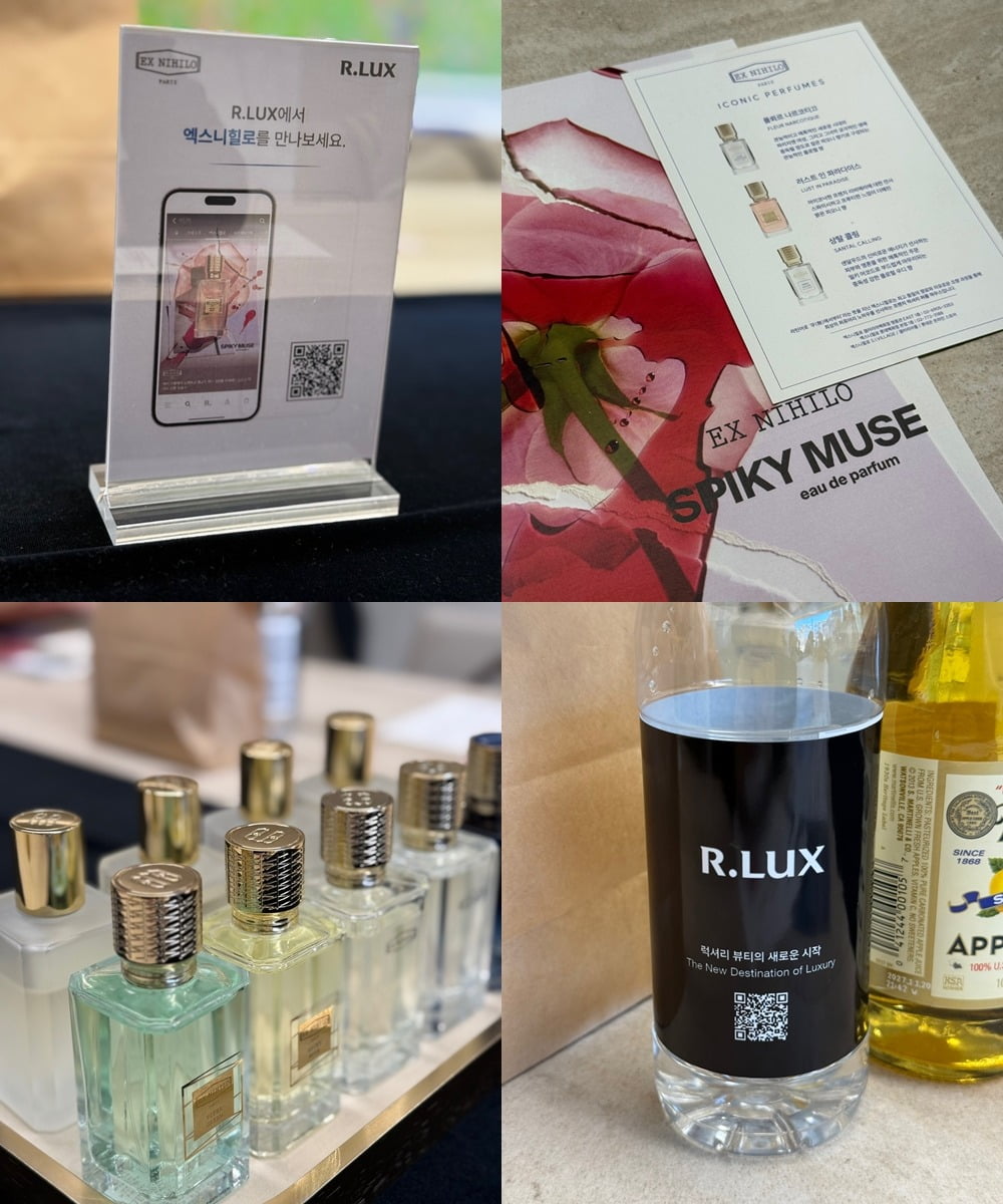 전시 이외에도 알럭스는 브랜드 팝업존을 설치해 다양한 제품의 시향을 가능하게 했다. 전시를 둘러본 뒤 4층으로 올라가면 '메모 파리' 팝업존이 나온다. 이곳에서는 브랜드 담당 직원이 메모 파리의 메인 향수와 2025년 주력 향수 등을 설명해주고 시향도 가능하다. QR코드를 통해 알럭스에서 원하는 제품을 바로 구매할 수도 있다.