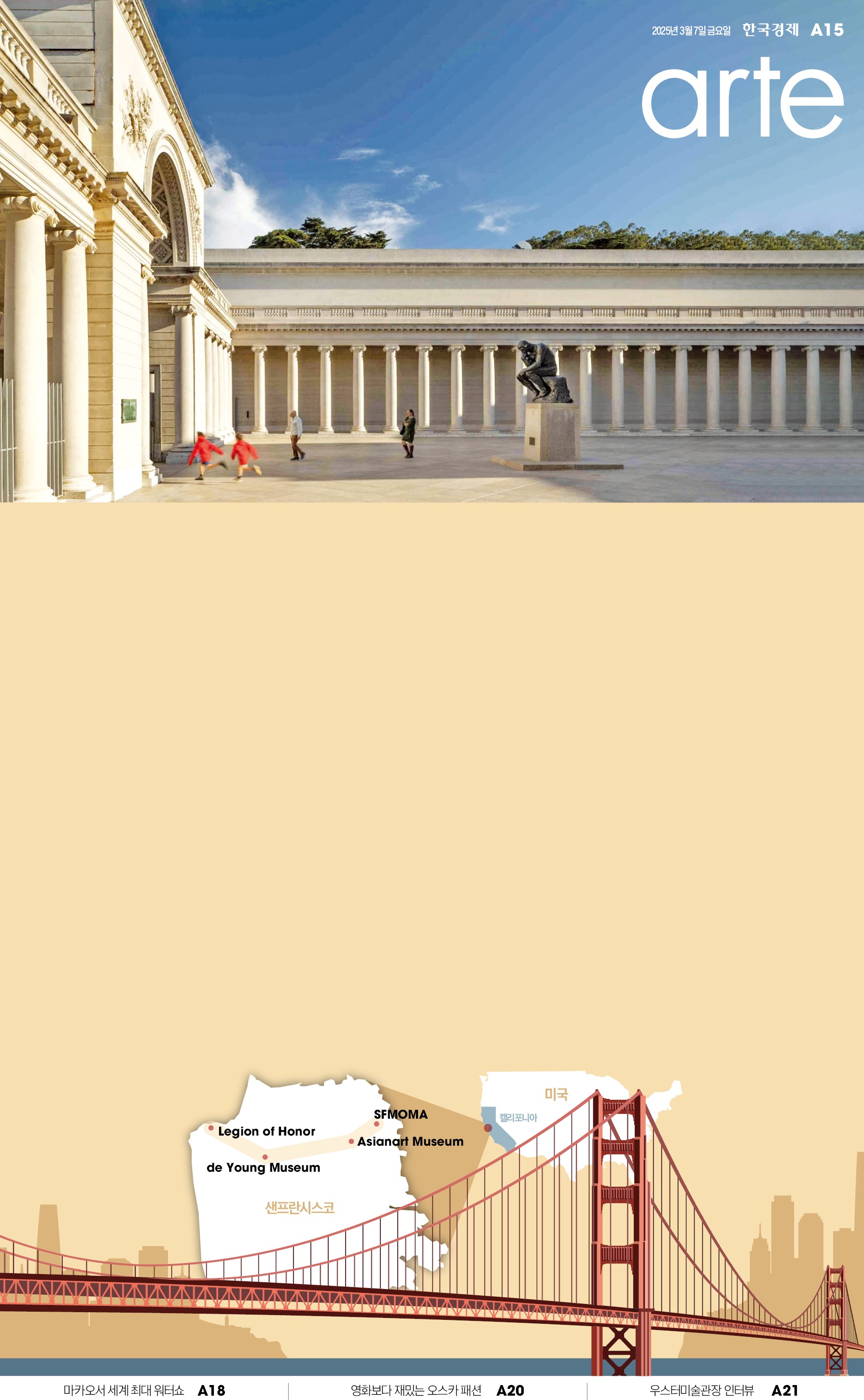 미국 샌프란시스코 ‘아트 로드’는 금문교에서 시작해야 한다. 금문교 남쪽으로 펼쳐진 두 개의 거대한 공원에 미국 서부를 대표하는 순수 미술관 두 곳이 자리잡고 있어서다. ‘샌프란시스코 순수 미술관(FAMSF)’이란 이름으로 통합돼 있지만 한때 앙숙이던 드영(de Young) 미술관과 리전 오브 아너(Legion of Honor)는 창업자들의 얽히고설킨 스토리만으로도 관람객들의 발길을 붙잡는다.
