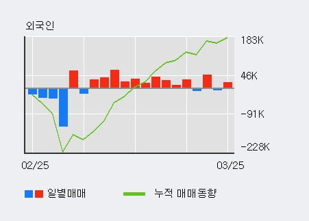 지난 한달을 기준으로 보면 외국인이 13.3만주를 순매수했고, 기관도 55.1만주를 순매수했다. 반면 개인들은 68.3만주를 순매도한 것으로 나타났다. 같은 기간 이 종목의 거래비중은 외국인과 개인이 각각 25.8%, 52.9%로 비중이 높다.