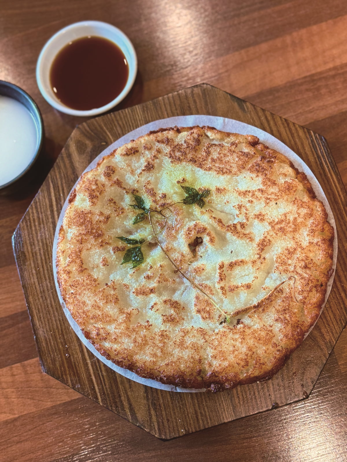 쌀쌀한 날씨엔 따뜻한 국물과 밥이 어우러진 이북식 별미 평양온반이 제격이다. 100% 강원도 감자로 만든 감자전은 겉바속촉의 정석이다. 가평 잣막걸리와 궁합이 좋다.