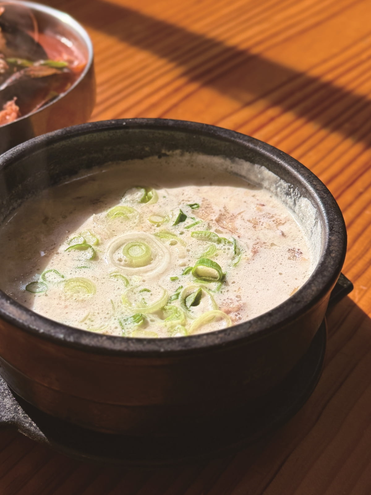 잣곰탕의 깊은 맛은 장작불에서 온다. 커다란 가마솥에서 뽀얀 곰탕 국물을 한참 우려낸다. 잣과 곰탕의 조합, 의외로 어울린다. 잣을 통째로 갈아 곰탕 국물 위에 얹은 메뉴로, 부드러운 맛이 배가된다. 기호에 따라 후추 등 양념을 추가해볼 것.