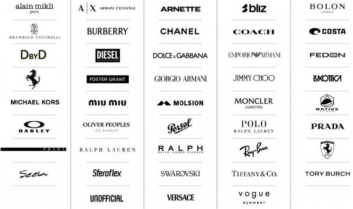에실로룩소티카가 보유하고 있는 브랜드는 레이밴, 오클리, 페르솔, 올리버피플스, 알랭미끌리, 포스터그랜트, 코스타 등 150개가 넘습니다.