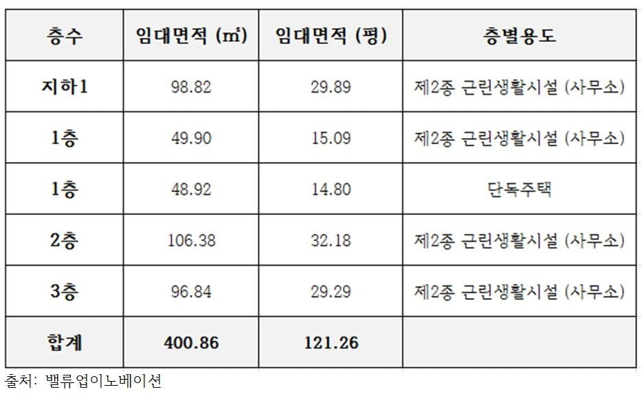 해당 건물은 1996년 11월 7일 사용승인을 받은 지하 1층, 지상 3층 규모로, 주 용도는 제2종 근린생활시설(사무소) 및 단독주택으로 되어 있습니다.