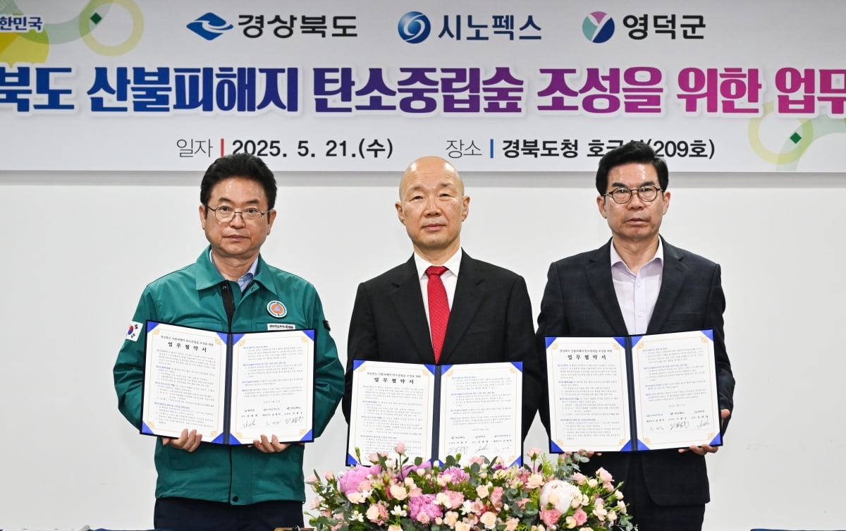 경상북도는 21일 경북도청 회의실에서 시노펙스, 영덕군과 함께 ‘산불피해지 탄소중립숲 조성을 위한 업무협약’을 체결했다.