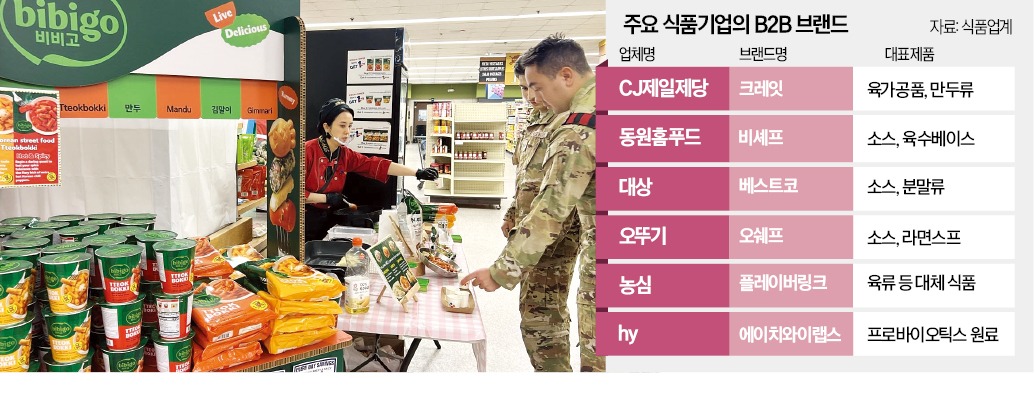 CJ제일제당이 이달부터 주한미군 마트에서 육가공 제품을 판매할 수 있게 된 것도 B2B 시장 개척 노력의 결과다. CJ제일제당은 주한미군 측에 다양한 판촉 활동을 벌이며 B2B 브랜드 ‘크레잇’으로 공급 계약을 따냈다. 지난해 CJ제일제당이 크레잇 브랜드로 B2B 가공식품 매출의 30%를 올렸다. CJ제일제당은 B2B 제품을 추로스 등 스낵과 디저트까지 확대한다는 계획이다.