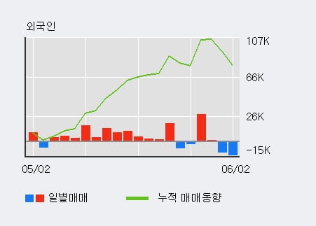 지난 한달을 기준으로 보면 외국인이 7.1만주를 순매수했고, 기관도 3.2만주를 순매수했다. 반면 개인들은 11.5만주를 순매도한 것으로 나타났다. 같은 기간 이 종목의 거래비중은 외국인과 개인이 각각 15.4%, 77.5%로 비중이 높다.