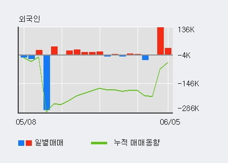 지난 한달을 기준으로 보면 기관이 934주를 순매수했고, 개인들도 1.7만주를 순매수했다. 반면 그동안 외국인은 6,685주를 순매도했다. 같은 기간 거래 비중은 개인이 77.6% 로 가장 높고, 외국인은 20.6%로 그 뒤를 이었다. 기관은 거래에 거의 참여하지 않은 것으로 보인다.