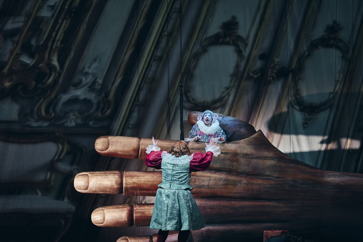 작품 전반에는 계급과 위계, 그리고 그 뒤에 숨은 상대적 박탈이 정교하게 내재되어 있다. 왕자와 트루팔디노가 오렌지를 찾아 거인 크레용트의 성에 들어갔을 때, 그들은 그저, 주방에서 허둥대는 생쥐처럼 보인다. 거인 요리사의 두 손이 곧 절대 권력자로 등장하는 장면은, 계급위에 또 다른 신분이 존재하는 현대의 계급 역학을 표현한 뼈있는 풍자다.