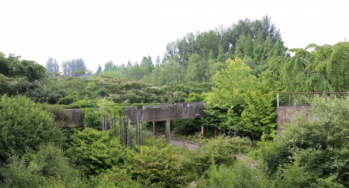 ‘하천 풍경과 생태의 회복’에 초점을 맞춘 다섯 번째 전시실에서는 국내 첫 생태 공원인 ‘여의도 샛강 생태공원’(1997, 2008)과 ‘선유도 공원’(2002) 사례를 만나볼 수 있다. 그중에서도, 선유도 공원은 정영선이 가장 기억에 남는 프로젝트로 손꼽는다. “겸재 정선의 그림에도 등장했던 선유봉은 원래 선유도라는 작은 섬에 있던 봉우리입니다. 이는 일제강점기에 여의도 비행장 건설용 골재 채취 목적으로 깎여나가며 원형을 잃었죠. 현재의 선유도 공원 부지는 1978년부터 2000년까지 서울 서남부 지역에 수돗물을 공급했던 정수장이 존재했던 곳입니다. 2002년 월드컵 개최에 즈음하여 완성된 선유도 공원은 기존 산업 시설의 흔적을 유지하면서도, 콘크리트에 묻힌 수로를 복원해 다양한 생물종이 스스로 생존하고 번성하는, 생태적이고 친환경적인 터전으로 탈바꿈시켰습니다.” 물을 핵심 요소로 설계된 환경은 생명의 상호 의존성과 자연의 회복력을 탐구한 결과로, 오늘날에도 도시인들의 소중한 쉼터로 자리매김했다.