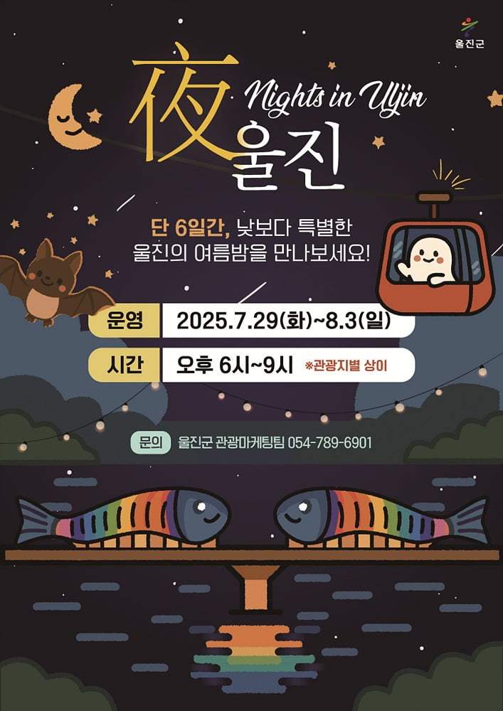 울진의 주요 관광지가 야간 개장하고, 귀신 분장을 한 직원들이 방문객을 맞이하는 납량특집 이벤트, 손전등을 들고 떠나는 성류굴 야간 탐험, 야시장 등 울진 곳곳의 관광지가 다양한 테마로 여름 밤을 수놓는다.
