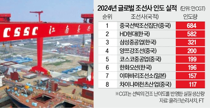 중국의 1·2위 조선사인 중국선박공업주식유한회사(중국선박)와 중국선박중공주식유한회사(중국중공)의 합병 논의가 시작된 건 2019년이다. 중국 조선사 간의 과열된 수주 경쟁이 ‘조선 굴기’의 걸림돌이 된다는 위기의식에서다. 대규모 상선에 특화한 중국선박과 방위산업 분야에 집중된 중국중공 간 기술적·조직 문화적 체질 차이가 해소되지 않고 중국 조선사들의 수주도 이어지자 5년간 합병 논의는 지지부진했다.하지만 지난 5일 중국선박이 중국중공을 흡수합병하는 안이 중국 상하이증권거래소 심사를 통과하면서 글로벌 조선업계의 ‘공룡 기업’ 탄생이 확정됐다. 글로벌 선박 시장의 ‘피크아웃’ 논란이 일자 합병을 미룰 수 없다고 계산한 것으로 분석된다. 한국 조선업계는 긴장하고 있다. 업계에선 한국이 비교우위가 있는 고부가가치 선종 위주의 사업 재편을 앞당겨야 한다는 지적이 나온다.