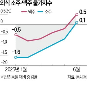 반년 넘게 하락세를 보이던 식당 술값이 반등했다. 대표 외식 품목인 소주와 맥주 가격이 동반 상승하면서 가뜩이나 고공 행진 중인 외식 물가를 더 끌어올릴 것이란 관측이 나온다.