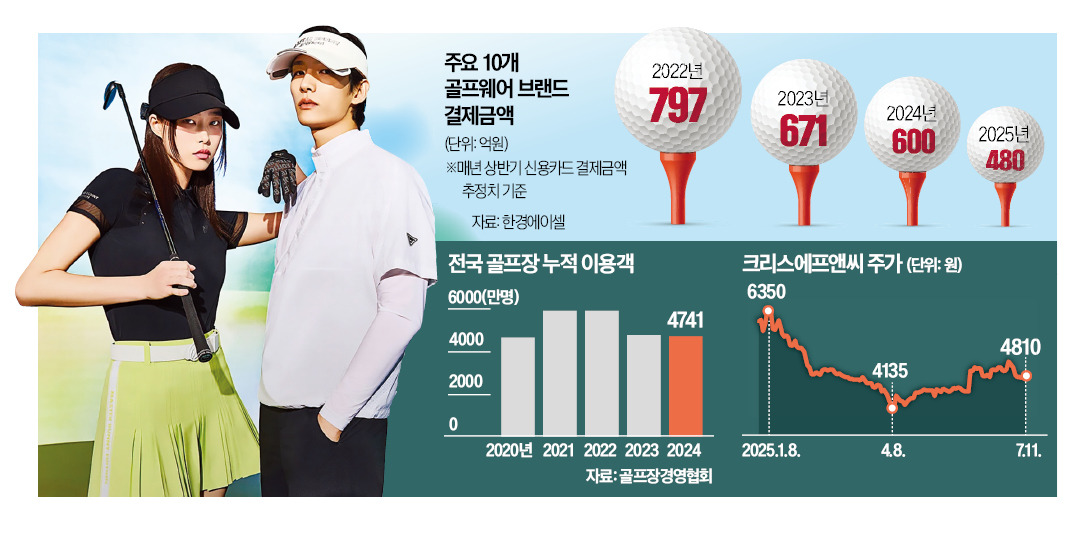 주요 골프의류 브랜드의 국내 판매 실적이 최근 3년 사이 40% 넘게 쪼그라든 것으로 나타났다. 과거 고성장을 이끈 소비층인 20~30대 골프 인구 감소와 소비심리 위축 영향이다. 골프의류 전문업체들은 유상증자와 점포 구조조정으로 ‘한파’ 버티기에 나섰다.스웨덴 스포츠 브랜드 제이린드버그(신세계인터내셔날 수입·판매)는 올해 상반기 국내 백화점 결제금액이 약 134억원으로 전년 동기 대비 6.4% 감소했다. 크리스에프앤씨가 판매 라이선스를 보유한 파리게이츠와 ‘마스터바니에디션’ ‘세인트앤드류스’ 결제금액은 같은 기간 각각 39.0%, 10.0%, 33.7% 줄었다.