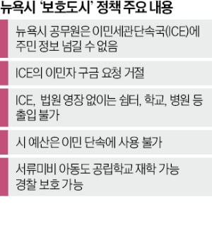 미국 법무부는 24일(현지시간) 뉴욕시의 ‘보호도시 정책’이 헌법에 위배된다며 뉴욕시 브루클린 연방법원에 소송을 제기했다. 뉴욕시 현지 경찰 등이 보호도시 정책 때문에 연방정부의 이민 단속에 협조하지 않는다는 것이다. 보호도시 정책이란 지방정부가 불법 체류자에 대해 연방정부의 이민 단속에 적극 협조하지 않도록 행정력 등을 제한하는 것이다. 예를 들어 ICE가 경찰에 구금된 이민자에 대해 “출소시키지 말고 넘겨달라”고 요청하면 지방 경찰이 이를 거부할 수 있다. 경찰, 교사, 공무원 등 시 소속 직원이 주민의 이민 신분을 질문하거나 확인하는 것을 금지한다. 학교·병원·쉼터·법원 등 공공 시설에서 ICE 요원 출입을 제한한다. 또 지역 예산으로 연방 이민 집행을 지원하지 않는다.연방정부는 불법 체류 중인 이민자들이 구금되면 이들의 석방일을 비롯해 법정 출석일, 구금 상태 등에 관한 정보에 접근할 수 있어야 한다고 주장한다. 불법 체류자 혹은 범죄를 저지른 이민자를 출소 직후 곧바로 체포해 추방 절차에 착수하기 위해서다. 연방정부 차원에서 이민자가 위험 인물인지 식별하고 추방 대상자를 지정하는 데도 해당 정보가 필요하다. 만일 이 같은 정보가 공유되지 않으면 ICE는 불법 체류자를 찾기 위해 직장, 가정, 쉼터 등을 급습해야 한다. 이에 따라 지역 사회 긴장이 조성되면 과거 LA에서처럼 이민자, 지역민 등과 갈등이 커져 사회적 파장을 일으킬 수 있다. 최근 LA에서 이민자의 대규모 시위가 있었던 것도 ICE가 의류 도매시장과 홈디포 등을 급습하면서 지역민과 이민자의 감정을 자극했기 때문이다.