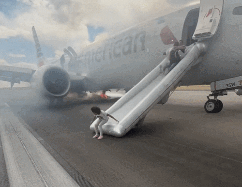 SNS에서는 사고 당시 영상이 퍼지고 있다. 영상을 보면 기체 왼쪽 뒷부분에서 검은 연기가 솟구치는 가운데 승객들이 황급히 비상 슬라이드를 통해 탈출하는 모습이 포착됐다.