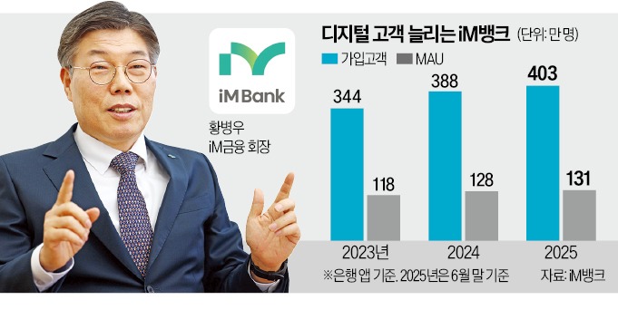 iM뱅크는 올 하반기엔 ‘생성형 인공지능(AI)을 활용한 재무 상담 및 프라이빗뱅킹(PB)’ 서비스를 내놓을 계획이다. 연중무휴로 24시간 자산관리 상담이 가능한 체계를 구축해 비대면 고객을 늘릴 방침이다. 황 회장은 올초 상반기 경영전략 회의에서 ‘2030년 월간활성이용자(MAU) 550만 명 달성’을 목표로 제시했다. 현재 iM뱅크의 MAU는 약 131만 명이다.
