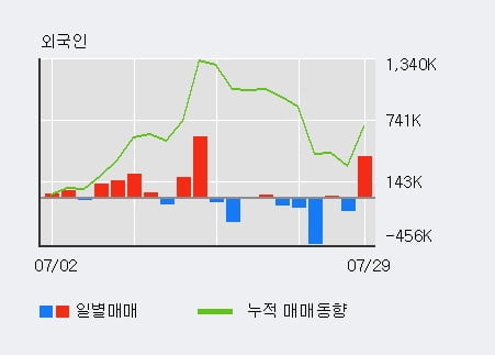 지난 한달을 기준으로 보면 외국인이 96.7만주를 순매수했고, 기관도 15.1만주를 순매수했다. 반면 개인들은 117.1만주를 순매도한 것으로 나타났다. 같은 기간 이 종목의 거래비중은 외국인과 개인이 각각 30.3%, 59.8%로 비중이 높다.