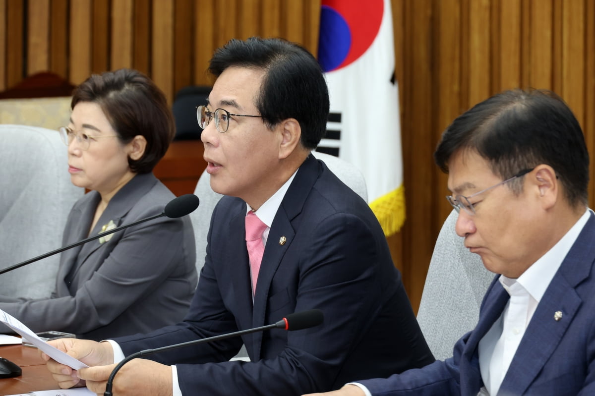국민의힘이 신천지 전당대회 개입설에 휩싸인 가운데, 송언석 국민의힘 비상대책위원장 겸 원내대표가 "무슨 근거로 그런 뚱딴지같은 말씀 하셨는지 솔직히 이해되지 않는다"고 정면 반박했다.