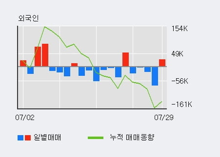지난 한달을 기준으로 보면 기관이 43.4만주를 순매수한 반면, 외국인은 12.6만주를 순매도했고, 개인들도 37.3만주를 순매도했다. 같은 기간 이 종목의 거래비중은 외국인과 개인이 각각 25.0%, 48.6%로 비중이 높다.