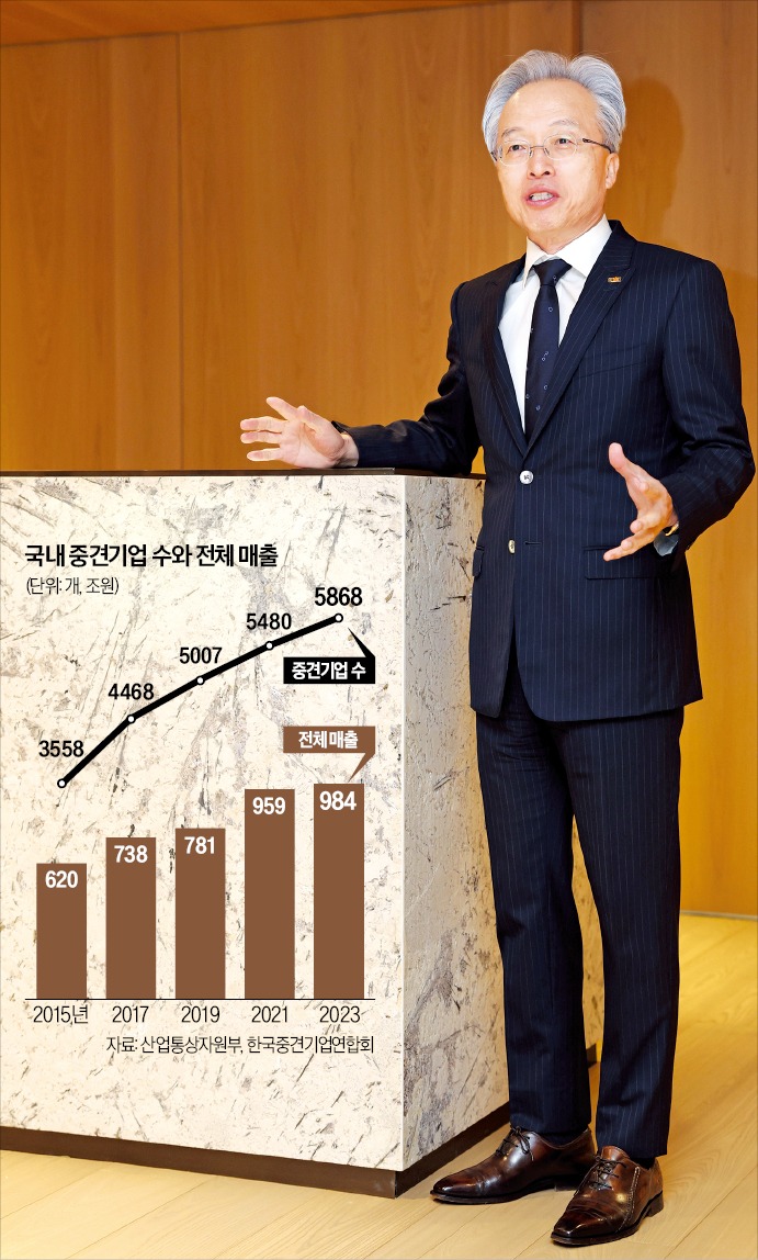 “기업이 역동성과 창의성을 발휘하려면 규제 완화가 필수입니다. 고용, 해고 등 노동제도가 유연해야 합니다. 기업이 망하기 전까지 해고할 수 없다면 어떤 기업인도 신사업에 도전할 수 없어요. 또 상속세·증여세율을 낮춰 기업이 지속가능할 수 있는 요건을 갖춰야 합니다. 중견기업들이 상속세 최고세율을 경제협력개발기구(OECD) 평균 수준인 30%까지 인하해달라고 하는 이유입니다.”