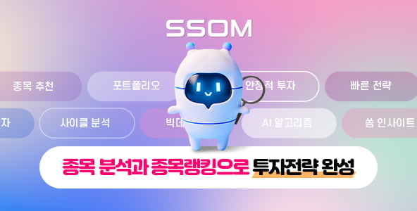 쏨은 수급 및 투자모멘텀을 기반으로 종목별로 진단점수를 제공하며 이를 근거로 종목을 추천하는 알고리즘이다.