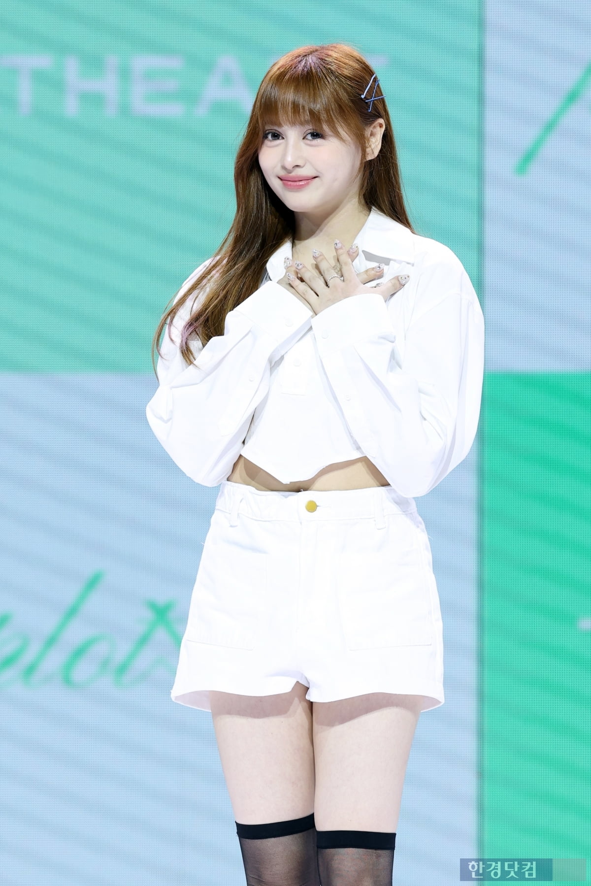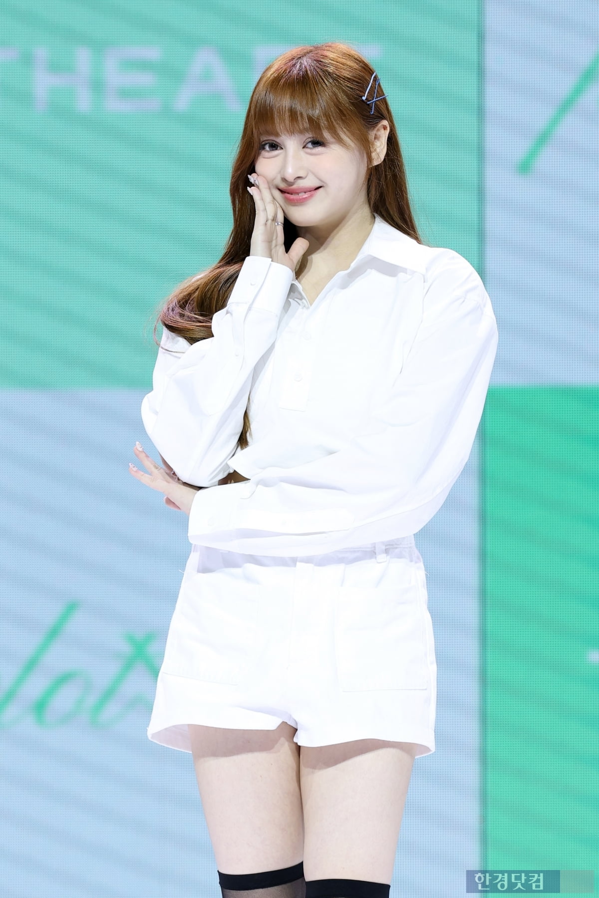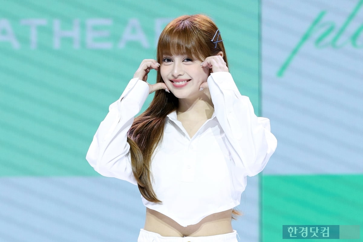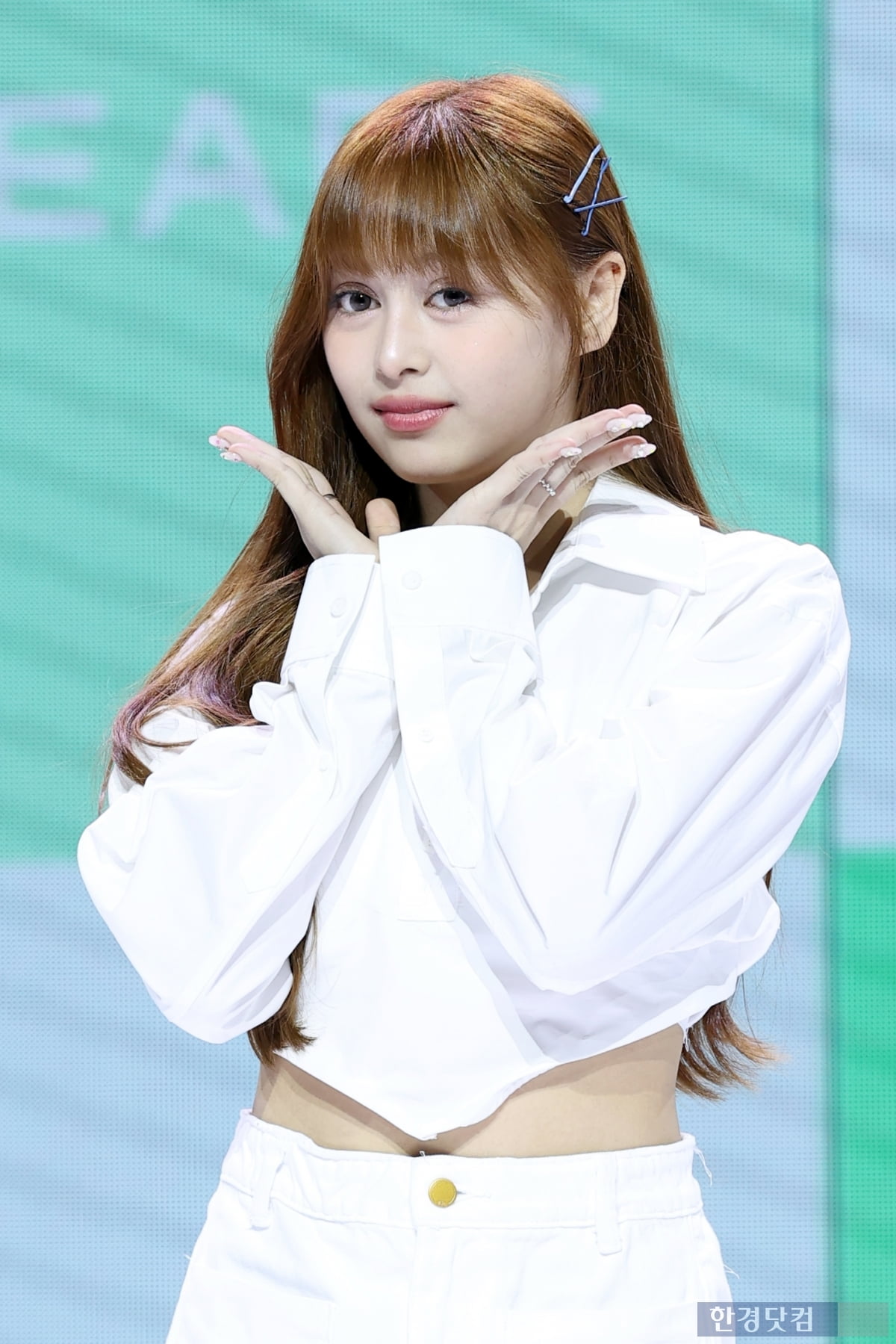 그룹 앳하트 케이틀린이 13일 오후 서울 한남동 블루스퀘어에서 열린 첫 번째 EP ‘Plot Twist(플롯 트위스트)' 발매 기념 쇼케이스에 참석해 포토타임을 갖고 있다.