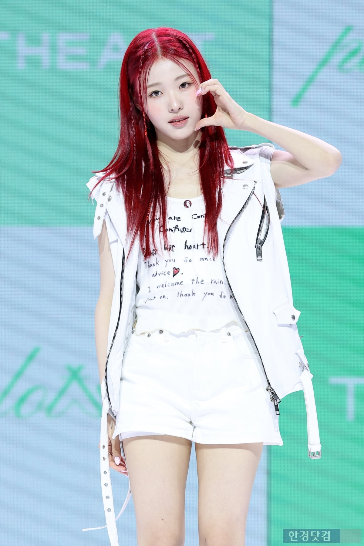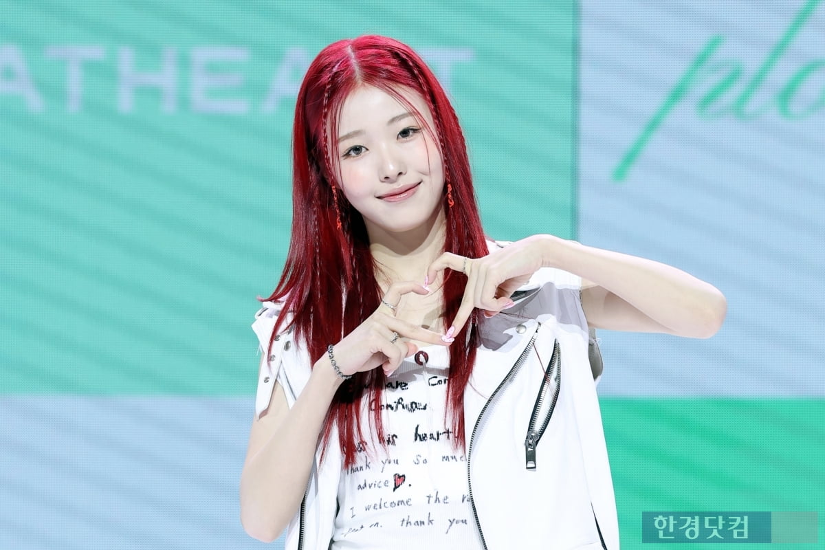 그룹 앳하트 아린이 13일 오후 서울 한남동 블루스퀘어에서 열린 첫 번째 EP ‘Plot Twist(플롯 트위스트)' 발매 기념 쇼케이스에 참석해 포토타임을 갖고 있다.