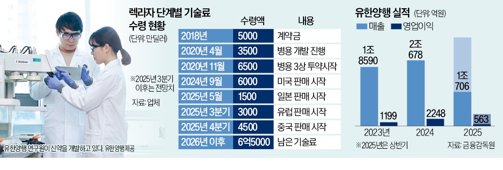 유한양행이 J&J로부터 수령한 단계별 기술료(마일스톤)는 3100억원 정도다. 유한양행은 이 중 상당액을 연구개발(R&D)에 재투자하는 선순환을 구축했다. 남은 1조원도 수령에 큰 문제가 없을 것이란 전망이 나온다. 업계 관계자는 “개발 초기부터 미충족 수요를 공략한 데다 부족한 역량을 외부에서 보강한 개방형 혁신이 국산 신약 성공 모델을 썼다”고 평가했다.