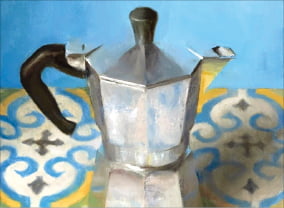 케니 해리스의 ‘모카’ 연작 시리즈는 모카포트의 각진 형태와 알루미늄 재질감을 재치 있게 활용한다. 모서리로 빛과 시선을 동시에 조작하는 동시에 유화 특유의 재질감을 이용해 모더니즘의 가장 대표적인 예라고 할 수 있는 모카포트를 낯선 추상의 영역으로 보내버린다. - 음식평론가 이용재의 ‘맛있는 미술관’● 세브란스: 단절