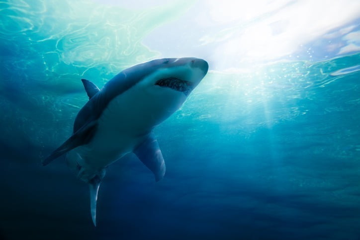 백상아리는 공격성이 매우 강한 포악 상어로 '식인 상어'라는 별명도 가졌다. 삼각형 이빨은 물체를 절단하기 쉽도록 톱니 모양을 이루고, 성체는 6m나 된다.