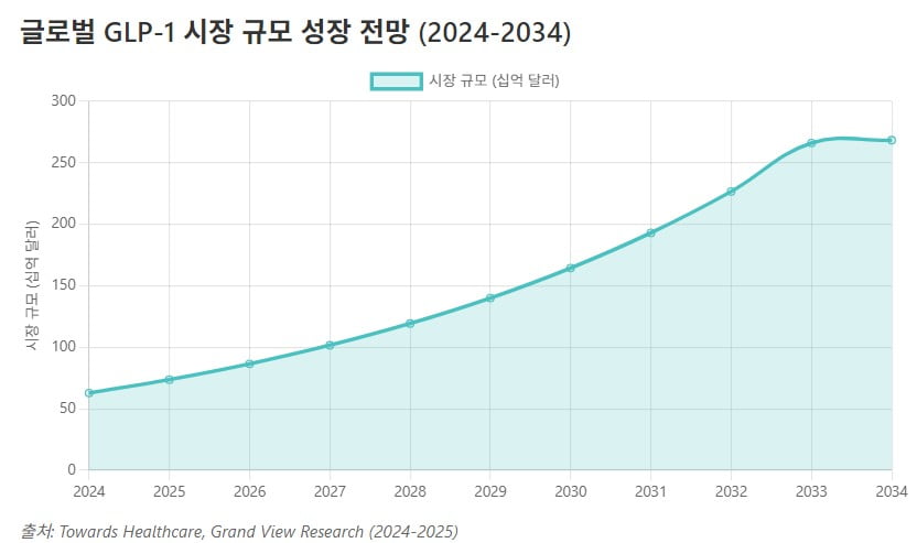 이런 성장은 1975년 이후 세 배나 증가한 전 세계 비만 인구라는 거대한 잠재 시장이 배경이다. GLP-1이 특정 환자군을 위한 틈새 약물이 아니라 역사상 가장 성공적인 블록버스터 의약품들과 어깨를 나란히 하는 거대한 약물임을 증명했다. GLP-1 시장 성장의 핵심 동력은 비만을 개인의 생활 습관 실패가 아니라 의학적 개입이 필요한 만성 질환으로 바라보는 의료계의 패러다임 전환에 있는 분석도 있다.