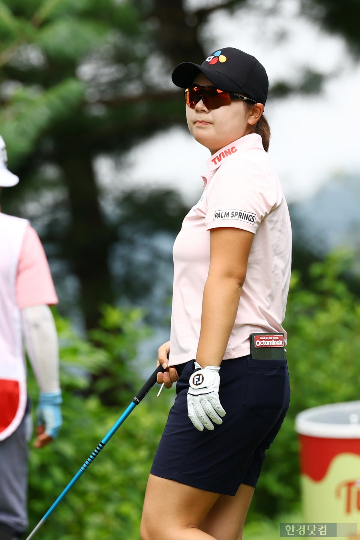 한국여자프로골프(KLPGA)투어 ‘BC카드·한경 레이디스컵 2025’ 1라운드 경기가 21일 경기도 포천시 포천힐스CC에서 열렸다. 대회에 출전한 홍정민이 1번 홀에서 티샷하고 있다.