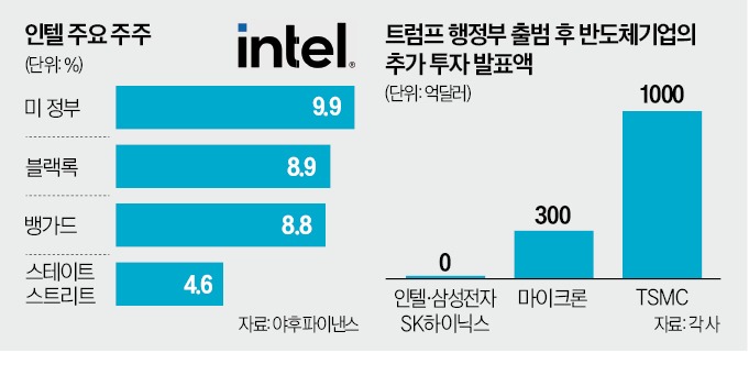 미국 정부가 자국 반도체 기업 인텔 지분 약 10%를 확보하며 최대주주에 올랐다. 인텔에 보조금을 지급하는 대가로 주식을 받았다. 도널드 트럼프 대통령의 ‘반도체 국가주의’가 현실화한 것이다. 트럼프 대통령은 “이런 거래를 더 하겠다”고 했다. 트럼프 행정부 출범 후 추가 투자 계획을 내놓지 않은 삼성전자와 SK하이닉스에 지분을 요구할 것이란 우려가 제기된다.