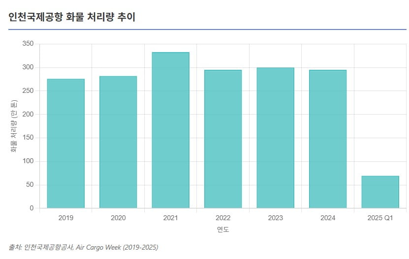 하지만 최근 미국의 관세 강화가 현실화하면서 시장의 분위기가 급변했다. 국제항공운송협회(IATA)는 중국발 수요 급감과 글로벌 무역 불확실성을 반영해 올 글로벌 항공 화물 성장률 전망치를 기존의 5.8%에서 0%에 가깝게 대폭 하향 조정했다.