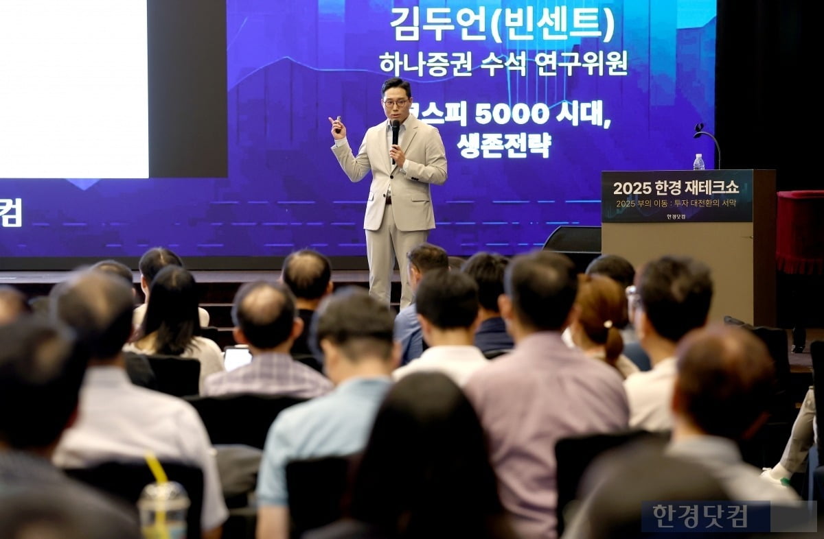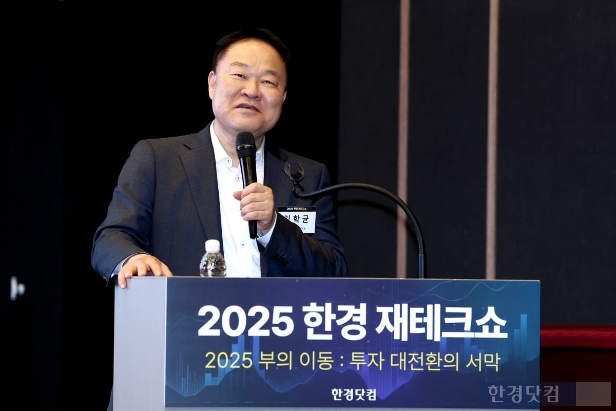 김학균 신영증권 리서치센터장(사진)은 27일 서울 중림동 한국경제신문사에서 한경닷컴 주최로 열린 '2025 한경 재테크쇼'에 참석, 기조강연자로 나서 이같이 밝혔다. 이번 행사는 '2025 부의 이동: 투자 대전환의 서막'을 주제로 진행됐다. 행사에서는 주식과 부동산 분야 다양한 전문가가 연사로 나와 하반기 전망과 재테크 전략을 제시했다.
