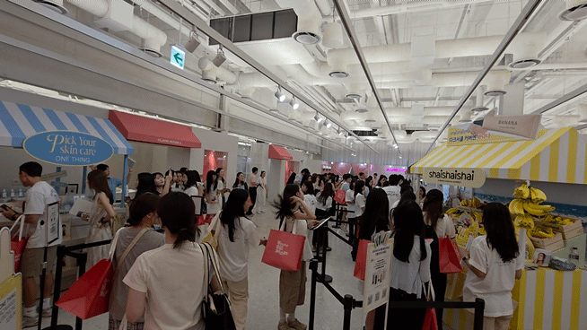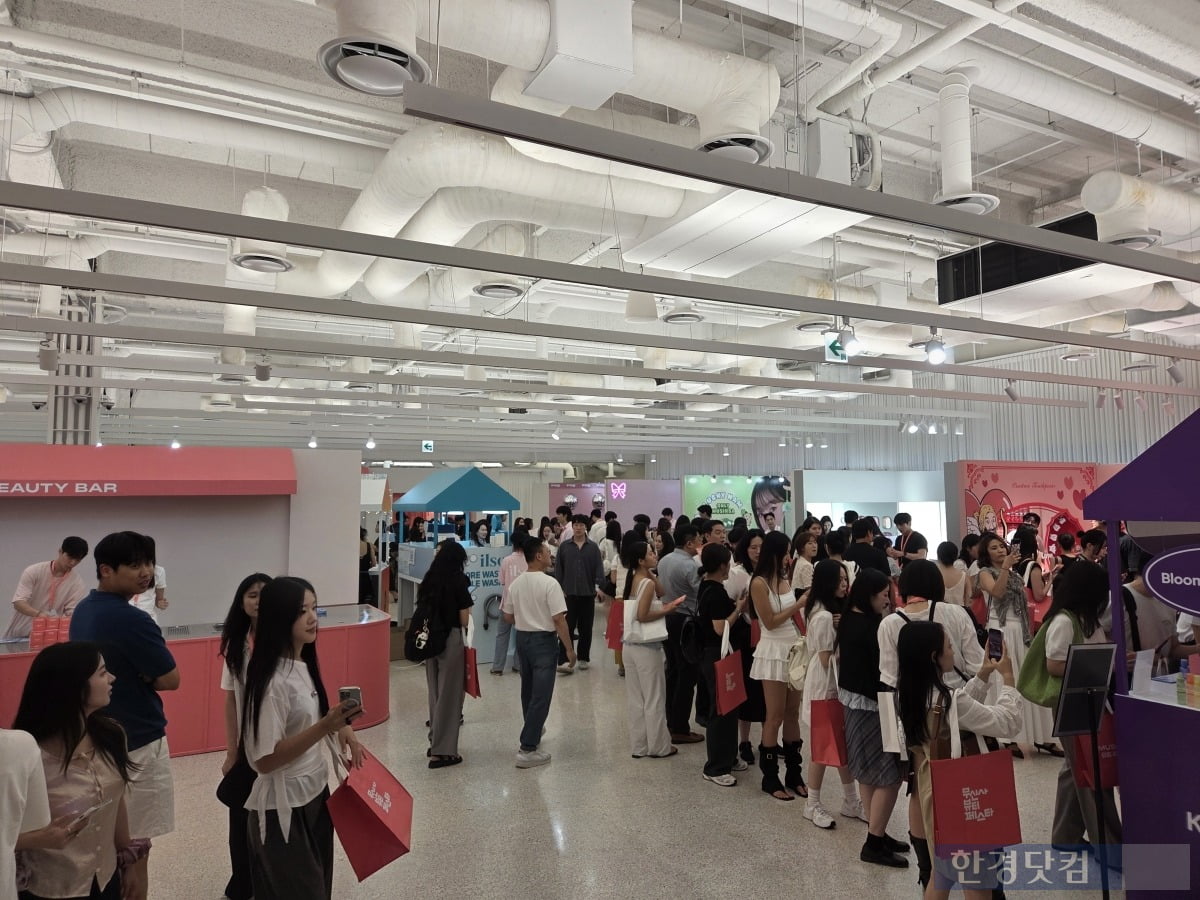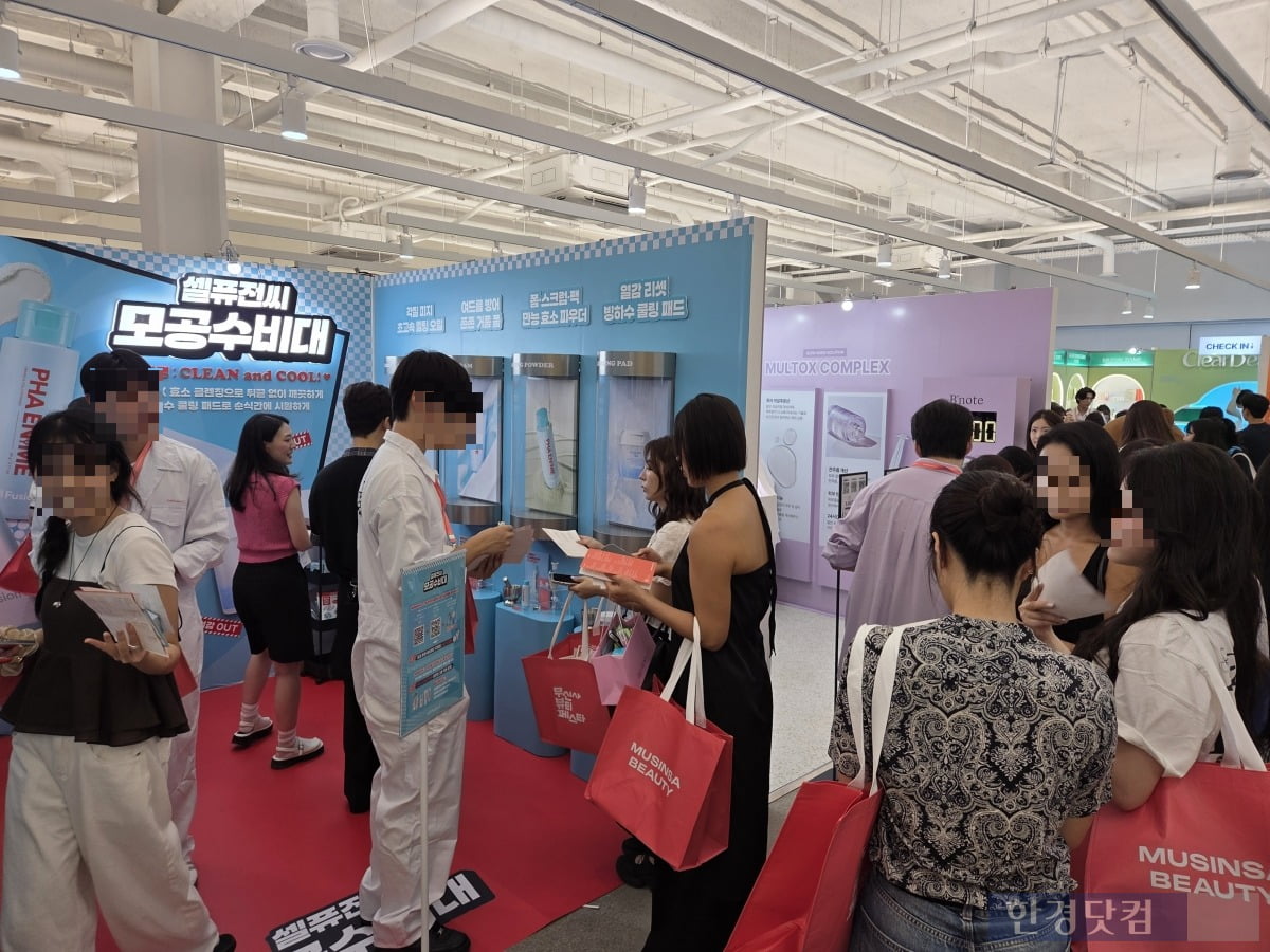 28일 서울 성수동에서 열린 무신사 뷰티 페스타 현장. 내부에 마련된 약 30개 이벤트 부스 앞에 차례를 기다리는 인플루언서들로 긴 대기줄이 늘어섰다. 이들은 입구에서 받은 분홍색 쇼핑백을 어깨에 멘 채 룰렛 돌리기, 모공 청소 게임 등 각 브랜드에서 진행하는 게임을 한 뒤 각종 화장품 샘플을 받아갔다.