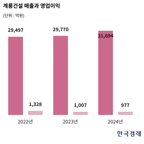 주가수익비율(PER)이 5배(26일 기준 3.74배)도 안 된다. 작년 영업이익이 977억원인데 27일 시가총액은 1751억원(코스피 800위)에 불과하다. 2년 영업이익으로 시가총액을 넘을 수 있는 것이다. 이 회사는 대전 맹주이자 전국 건설사 시공능력평가 15위에 이름을 올리고 있는 계룡건설이다.