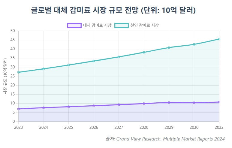 이 거대한 시장의 혜택은 인수·합병(M&A)으로 소수 기업에게 집중됐다. 천연 감미료의 대명사인 스테비아 시장이 대표적이다. 글로벌 원료 대기업 인그리디언은 세계 최대 스테비아 생산업체였던 퓨어써클을 인수했다. 경쟁사인 '테이트 앤 라일'은 '스위트 그린 필즈'를 인수하며 해당 시장을 양분하는 구조를 만들었다. 이들 업체는 단순한 생산 능력 확보를 넘어 스테비올 배당체 추출 및 정제, 쓴맛을 가리는 배합 기술과 관련된 핵심 특허까지 장악했다.