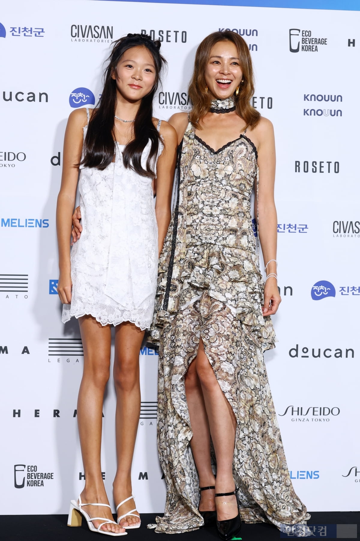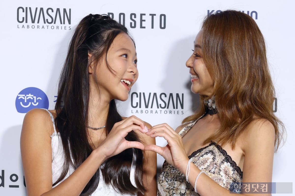 모델 야노 시호와 딸 추사랑이 6일 오후 서울 중구 동대문디자인플라자(DDP)에서 열린 '2026 S/S 서울패션위크' DOUCAN (두칸, 최충훈 디자이너) 패션쇼에 참석해 포즈를 취하고 있다.
