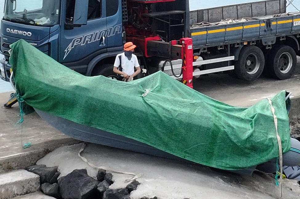 앞서 제주해경은 8일 오전 제주시 한경면 용수리 인근에서 주민 신고를 받고 고무보트를 확인했다. 현장에는 90마력 엔진이 설치된 보트와 함께 크기 다른 유류통 12개, 구명조끼 6벌, 중국어 표기가 있는 빵과 비상식량, 낚싯대 등이 있었다.