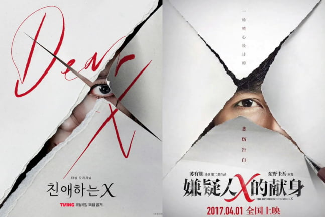 티빙 오리지널 '친애하는 X' 캐릭터 포스터가 중국 영화 '용의자X적 헌신'의 포스터와 지나치게 흡사하다는 지적이 나왔다.