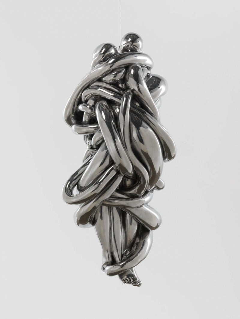 또 다른 조각 작품 <The Couple> (2007?2009)은 소용돌이를 이루며 서로를 휘감듯 안고 있는 연인의 모습을 담고 있습니다. 어딘지 모르게 위태롭고 불안해 보이는 건 가느다란 실에 매달려 있기 때문인지도 모르겠습니다. 여성의 머리카락은 남성의 온몸을 안고 있는데, 고치 안에 감싸인 모습은 심장의 해부학적 구조를 닮아있습니다. 나선형으로 엉켜 영원히 돌고 있는 듯한 두 사람의 모습에서 사랑에 대한 갈망과 친밀함, 버려짐에 대한 두려움과 연약함이 동시에 느껴집니다.