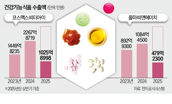 콜마의 건기식 자회사인 콜마비앤에이치의 수출 규모도 매년 커지고 있다. 콜마비앤에이치에 따르면 올해 상반기 연결 기준 매출 3000억원 가운데 수출 비중은 31%다. 콜마비앤에이치 관계자는 “말레이시아, 일본, 베트남 물량 계약을 따낸 것이 수출 확대에 기여했다”고 설명했다.