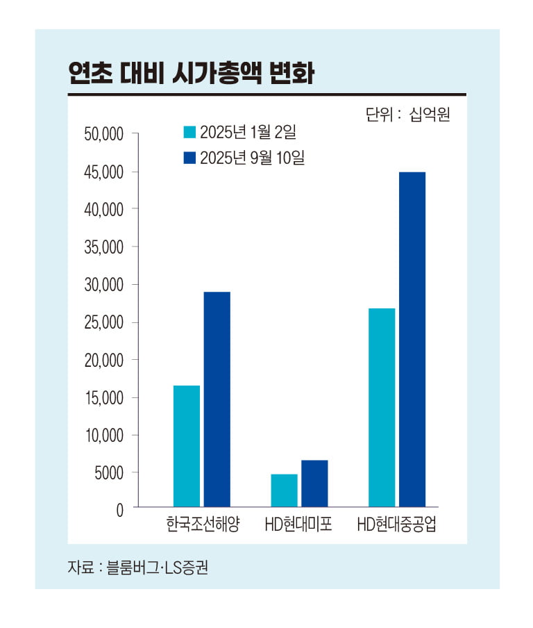 시장 반응도 긍정적이다. 합병 발표 이후 한조양의 시가총액은 약 14% 상승했다. 한조양 지분 35.05%를 보유한 최대주주인 HD현대도 기업가치 상승 수혜를 받을 전망이다. 정경희 LS증권 연구원은 “한조양의 기업가치 상승은 곧 HD현대의 지분가치와 배당수익 증가로 연결된다”고 말했다.