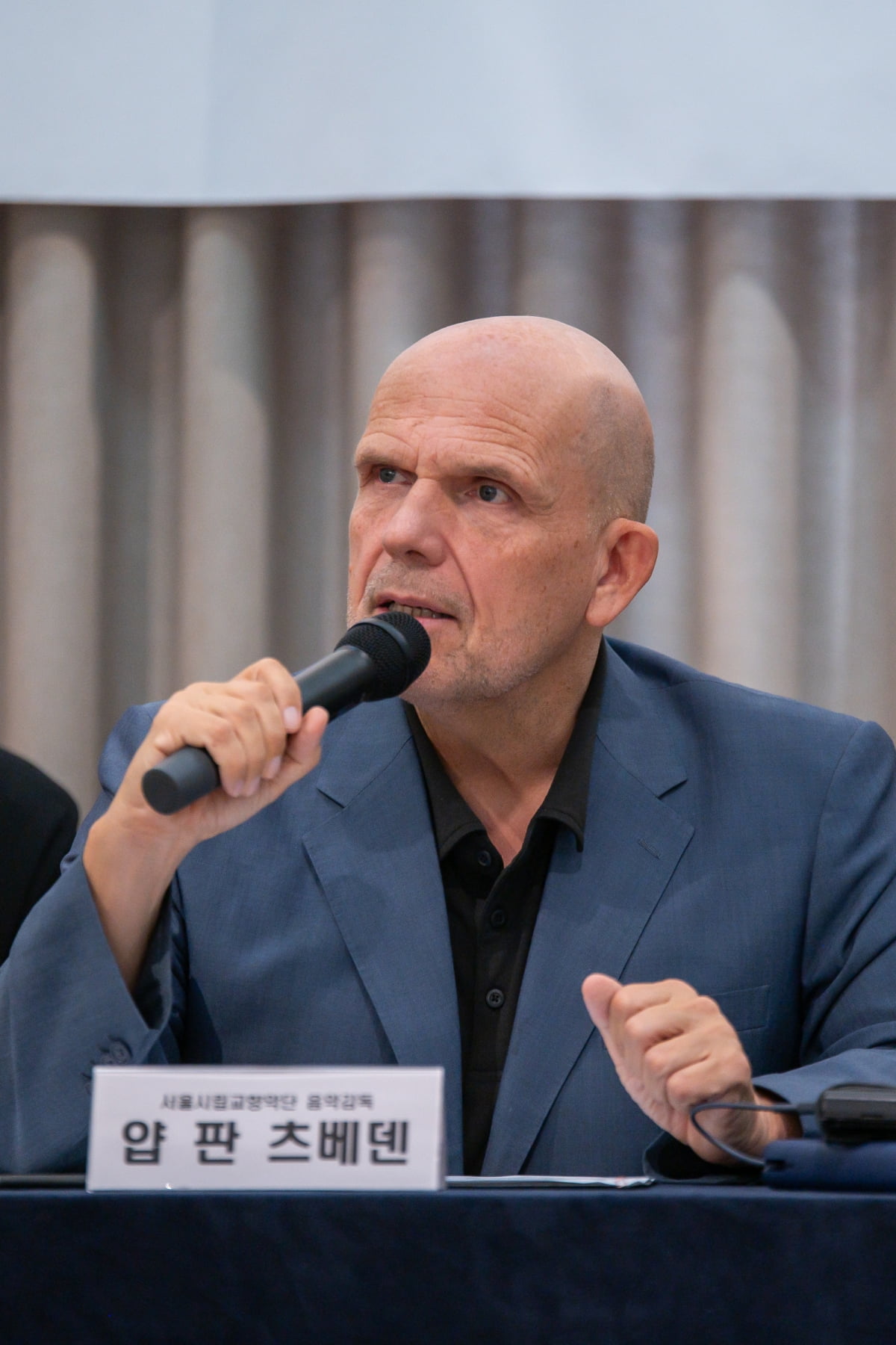 츠베덴 감독은 정 작곡가를 극찬하는 것으로 간담회를 마무리했다. “(정 작곡가가) 채점을 앞둔 학생같이 느꼈다고 하셨는데, 사실 우리 음악가들에게 필요한 건 날마다 학생이 돼야 한다는 점입니다. 항상 자신에게서, 사람들에게서 무엇을 배울까에 대한 궁금증을 가져야 하죠. 그의 솔직한 모습과 열린 마음을 봤을 때 다시 한 번 정 작곡가가 한국을 대표하는 작곡가라고 확실히 말할 수 있습니다.”