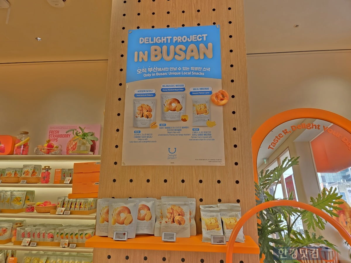 딜라이트 프로젝트 해운대점도 방문할 기회가 있었다. 딜라이트 프로젝트는 올리브영의 건강간식 자체 브랜드(PB)로 지난 4월 국내 1호점인 해운대점을 열었다. 매장에는 딜라이트 프로젝트에서 출시한 모든 제품이 한데 모여 있었다. 시그니처 제품부터 김부각 등 전통간식, 씨앗호떡을 활용한 부산 특화 상품까지 다양한 제품이 진열돼 있었다.
